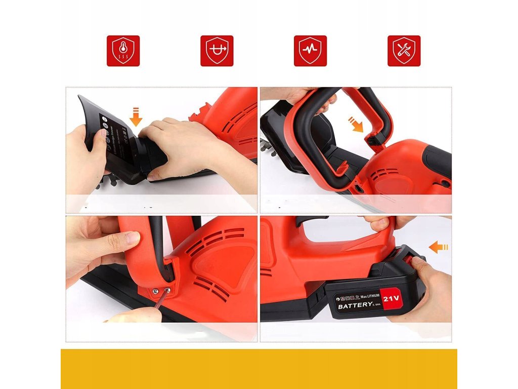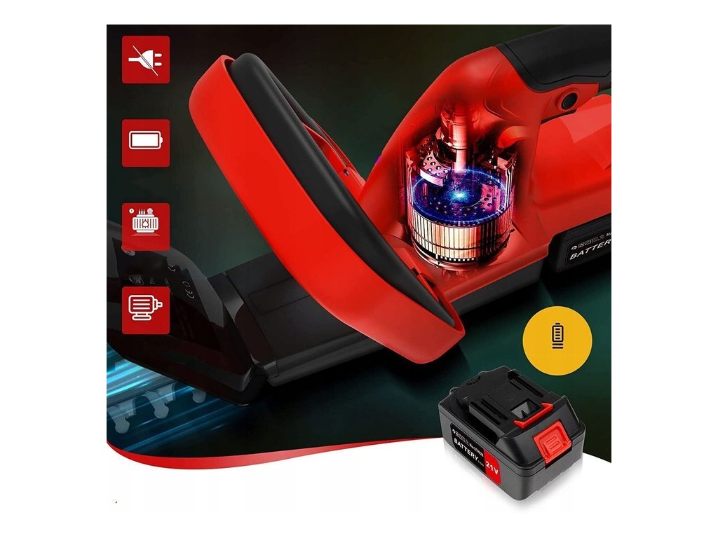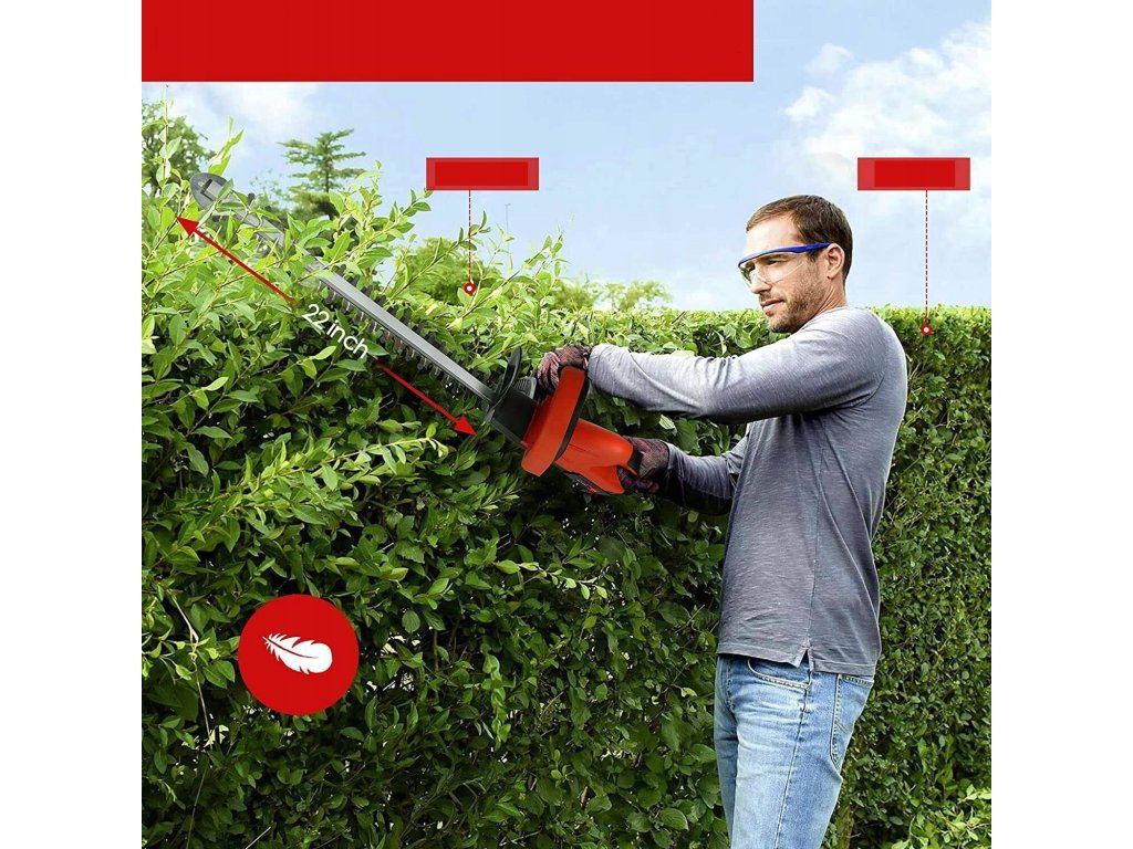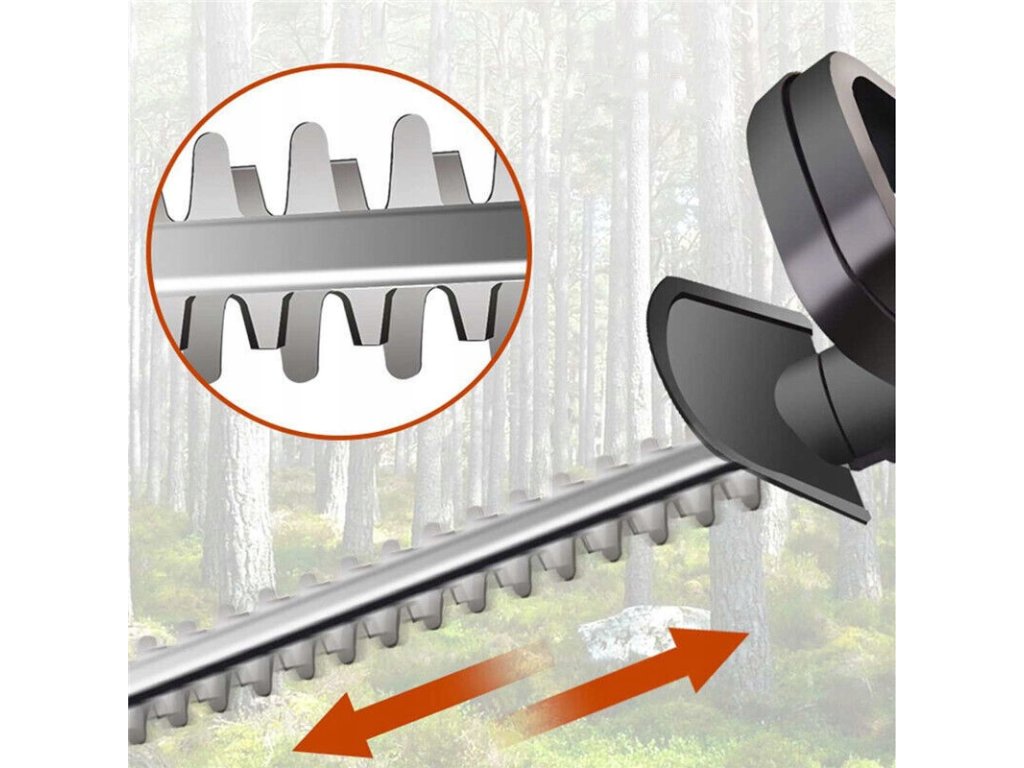 - Vybaveno nastavitelnou dvojitou čepelí, která se může rychle pohybovat dopředu a dozadu, aby rovnoměrně zastřihla přebytečné listy a větve. Kromě toho poskytuje vzdálenost zubů o šířce 3/5 palce širší pracovní rozsah a hodí se pro většinu velikostí a tvarů živých plotů.