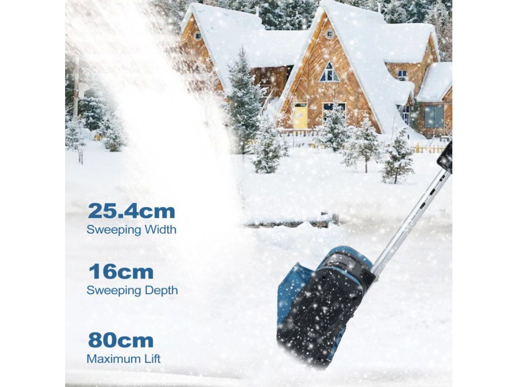 - Nastavitelné prvky:** úhel rukojeti a směr stříkání sněhu