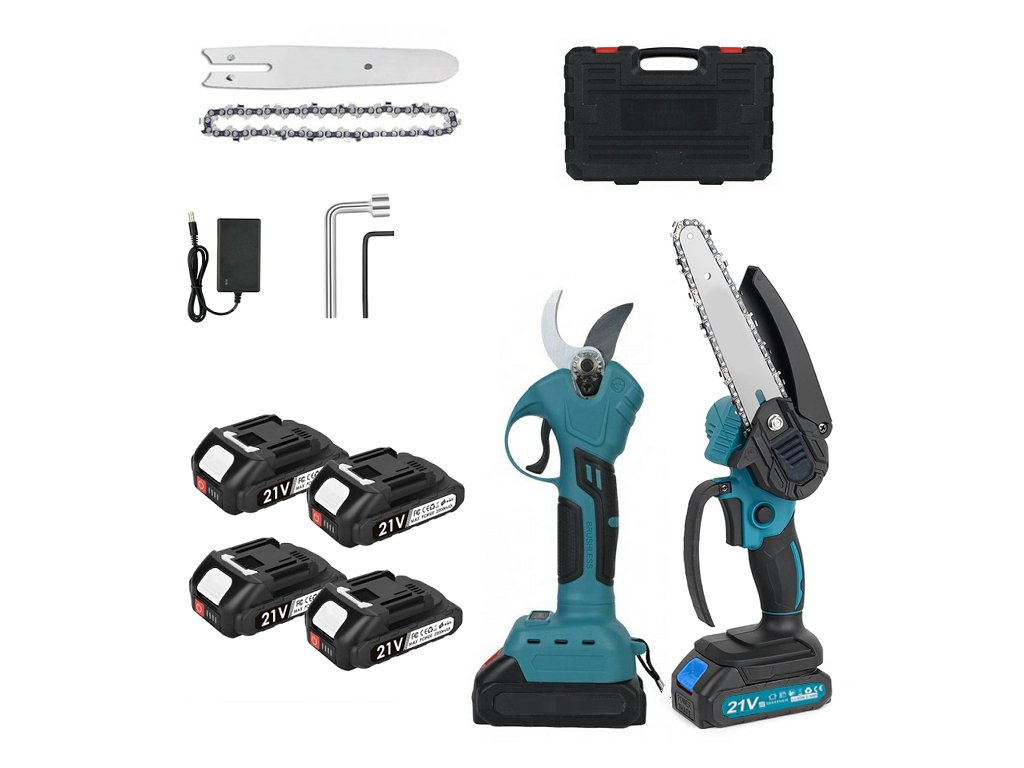 Výhodná AKU sada pro každého zahradníka – Elektrická ruční pilka + Výkonné AKU nůžky + 4x náhradní baterie