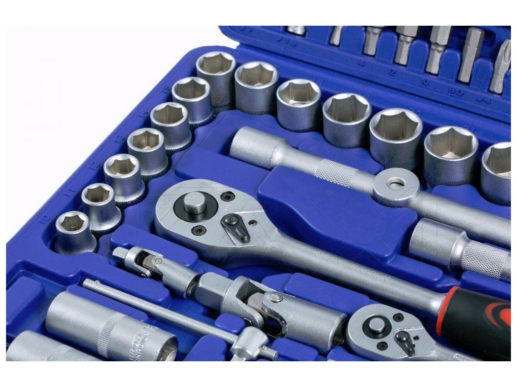 Tato kompletní sada nástrčných klíčů je vyrobena z vysoce kvalitní chrom-vanadiové oceli (CrV), která zajišťuje vysokou odolnost a dlouhou životnost. Praktické uspořádání v pevně uzavíratelném kufru umožňuje snadné přenášení a skladování.
