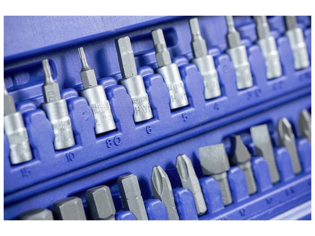 - 16 ks velkých bitů – (3x ploché, 4x křížové, 3x imbus, 4x torx)