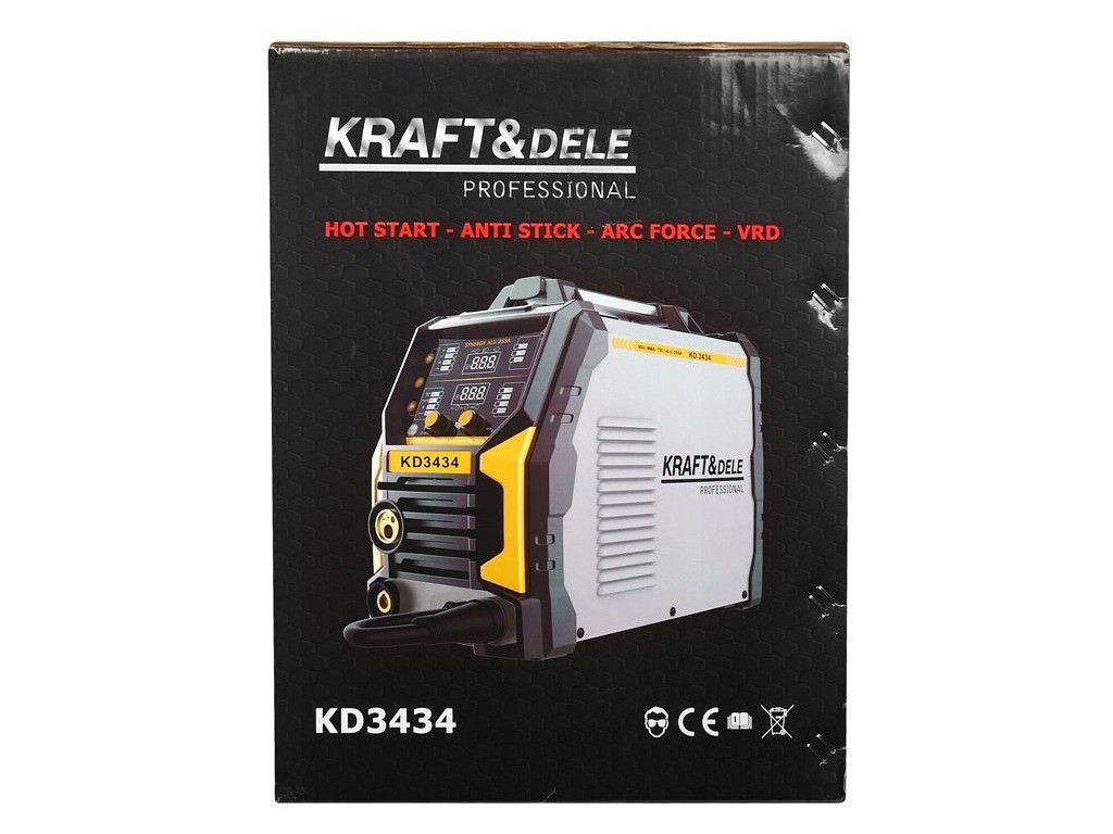 Svářečka KD3434 se pyšní robustní konstrukcí a intuitivním ovládáním, které zaručuje snadnou manipulaci i pro méně zkušené uživatele. Je napájena standardním napětím 230V 50Hz, což zajišťuje bezproblémové připojení v každé domácnosti či dílně. S maximálním svařovacím proudem až 255A a schopností pracovat s elektrodami o průměru 1,6–4,0 mm a drátem 0,8 / 1,0 mm, nabízí dostatečný výkon pro většinu úkolů. Vysoká účinnost 60% a bezpečnostní třída izolace F s ochranou IP21S garantují spolehlivý a bezpečný provoz v různých podmínkách. Svářečka Kraft&Dele KD3434 je synonymem pro kvalitu, výkon a dlouhou životnost, ideální pro každého, kdo hledá spolehlivé řešení pro svařování kovů.