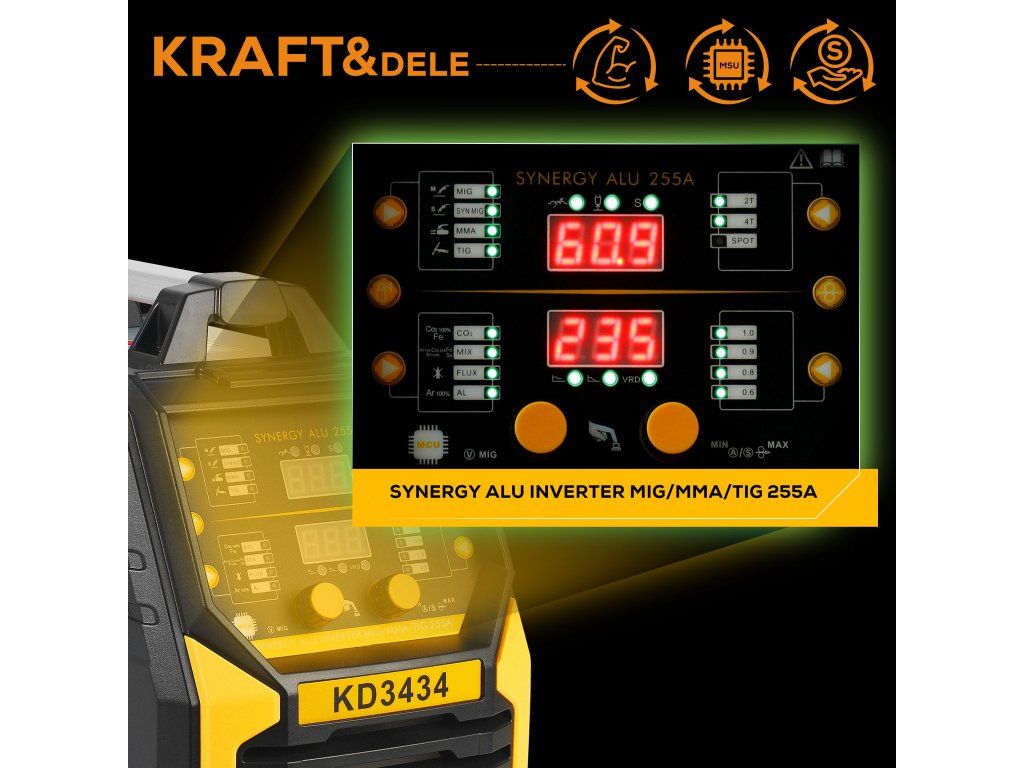 Představujeme vám invertorovou svářečku Kraft&Dele KD3434, univerzální nástroj, který posune vaše svářečské projekty na novou úroveň. Ať už jste zkušený profesionál v dílně, nebo nadšený kutil, tento model je navržen tak, aby splnil vaše nejnáročnější požadavky. Díky své multifunkčnosti zvládá efektivně a precizně svařování metodami MIG Flux, MMA a TigLift, což z něj činí nepostradatelného pomocníka pro širokou škálu materiálů a aplikací.