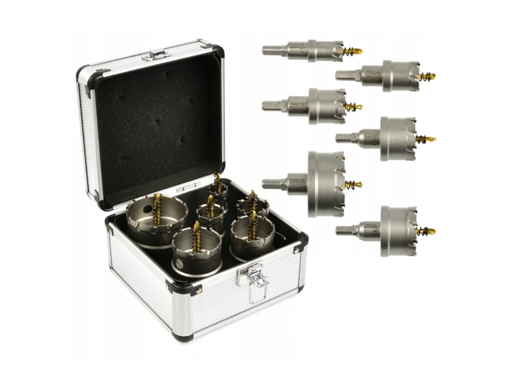Tato sada TCT děrovaček je ideální pro vytváření přesných otvorů ve tvrdých materiálech, jako je ocel, litina, barevné kovy, dřevo nebo plast. Čepele z karbidu wolframu (TCT) poskytují výrazně vyšší tvrdost a odolnost vůči vysokým teplotám ve srovnání s běžnou rychlořeznou ocelí (HSS).